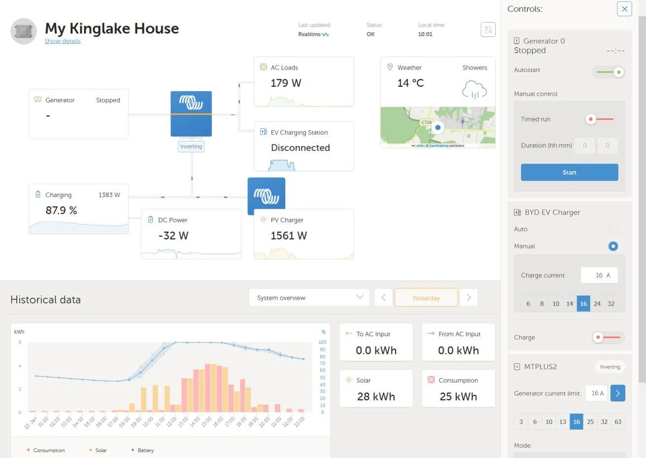 的Victron VRM门户显示能量流和清晰的图形系统数据,加上新的远程访问控制(RHS)